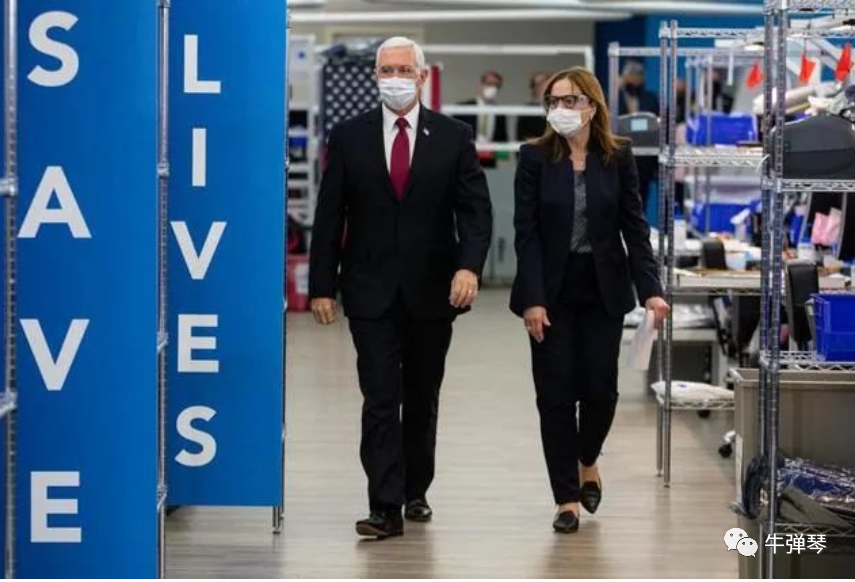 所以,随后去通用汽车视察,彭斯就主动戴上了口罩;但彭斯是彭斯,特朗普去口罩工厂视察,就是不戴口罩。