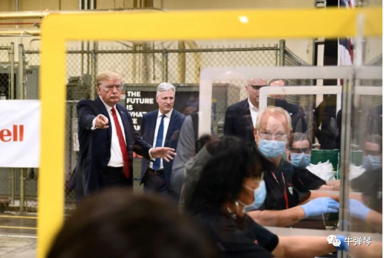 1,在亚利桑那州霍尼韦尔的一家口罩工厂,工人们都戴着口罩,特朗普和随行都没有戴口罩。有点违和吧。