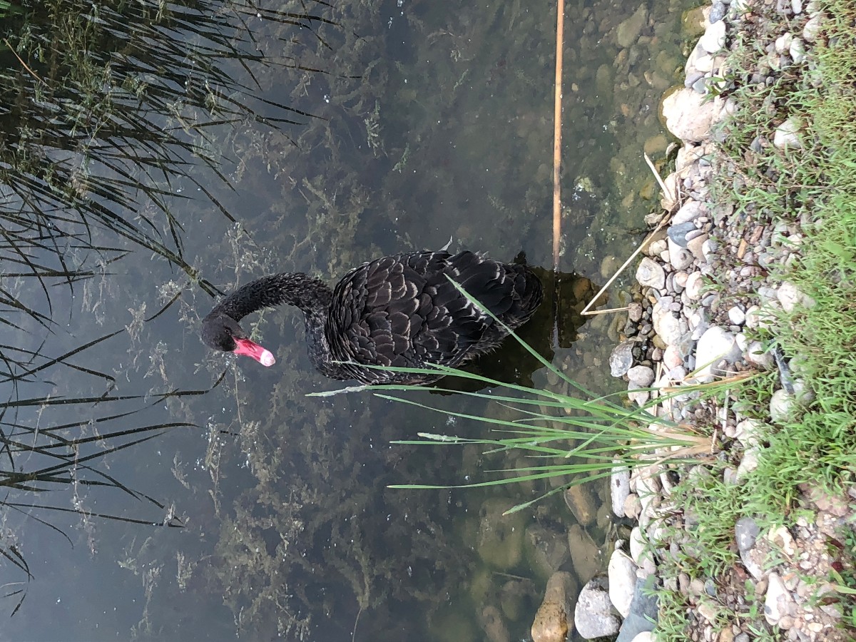 只见这只黑天鹅在水面来回游荡,时而悠闲觅食,时而梳理羽毛,在水草丛中时隐时现。据有关资料介绍,黑天鹅是世界著名观赏珍禽,一般出现在公园、动物园等场所人工饲养,野外黑天鹅单独出现比较罕见。在繁殖期喜欢栖息在不易被打扰的、食物丰富的浅水水域中,如富有水生植物的湖泊等。