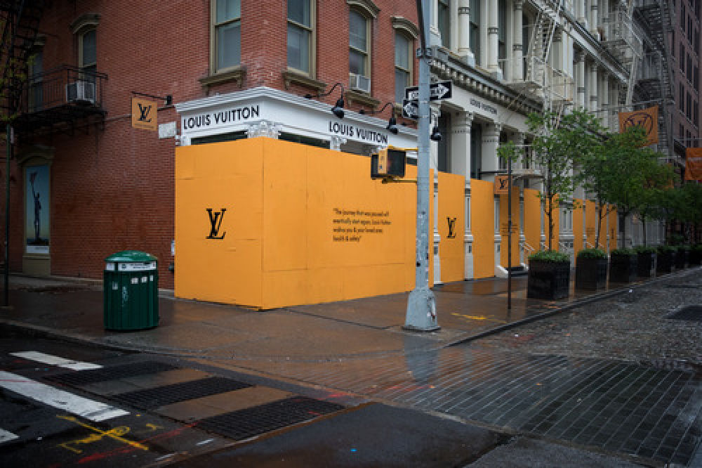 这是5月8日在美国纽约拍摄的一家暂停营业的路易威登商店。新华社发(郭克摄)