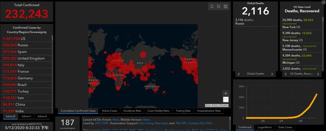 当前,俄罗斯疫情防控形势严峻。霍普金斯大学最新数据显示,俄罗斯新冠肺炎确诊病例已达23.2万例,超过西班牙,位居除美国外全球第二位;死亡病例达2116例。