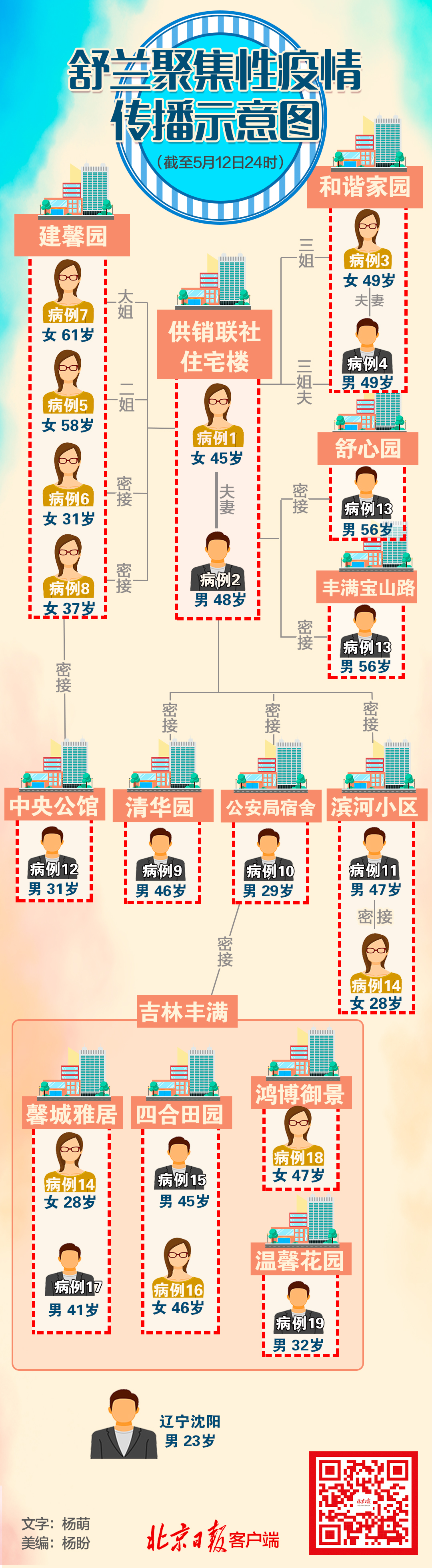 新增6例病例中,有4例是5月10日通报确诊病例9的密接者,1例是5月10日通报病例1的密接者,另一例为5月10日通报病例1的密接者。北京日报客户端记者梳理发现,除了舒兰的8个小区外,疫情已经扩散到了吉林市丰满区的5个社区。