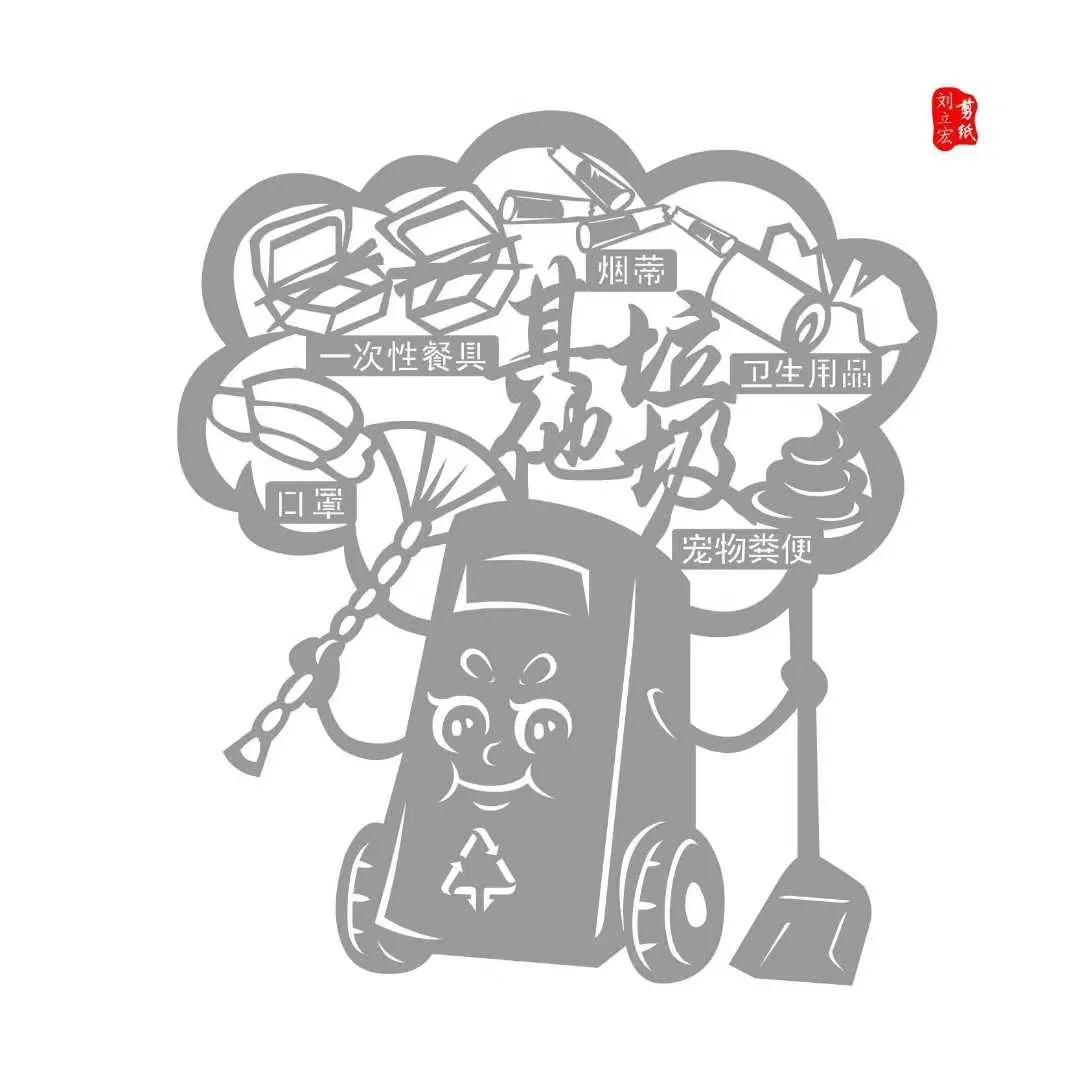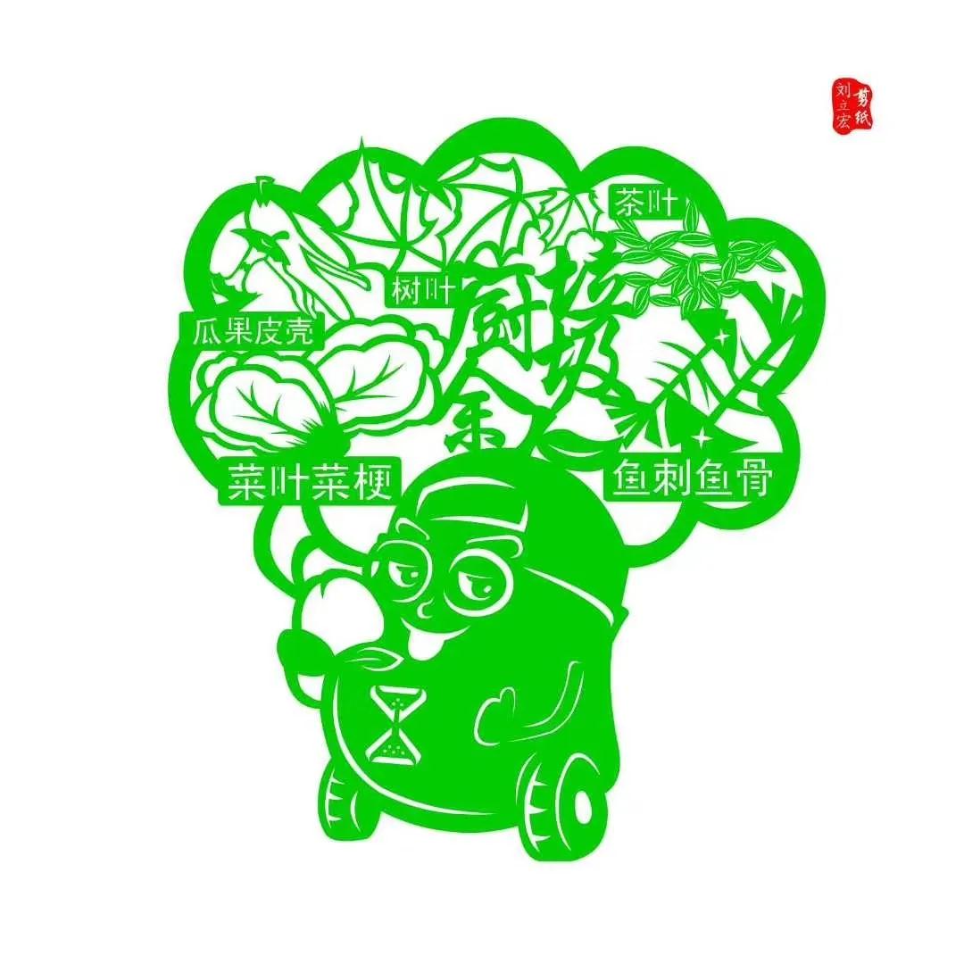 在垃圾分类中,四色垃圾桶是我们最常见的“装备”。作为剪纸达人,刘立宏老师将此技艺娴熟运用,巧妙还原本色、传递知识,足以让人啧啧称赞。