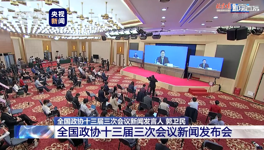 今天下午,全国政协十三届三次会议新闻发布会召开,大会新闻发言人郭卫民向中外媒体介绍本次大会有关情况并回答记者提问。