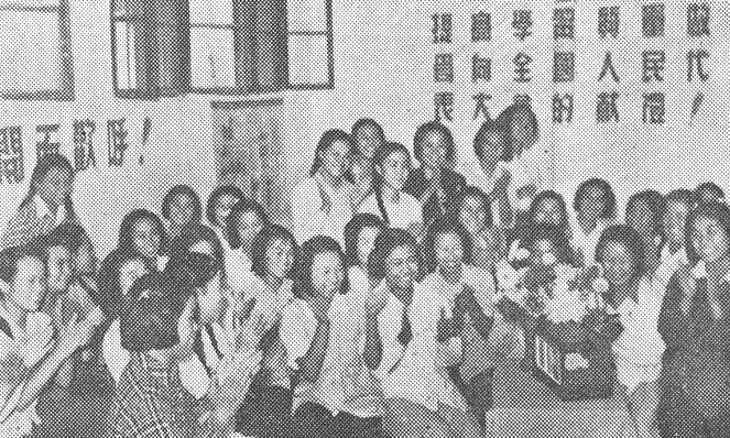 1954年9月15日,第一届全国人民代表大会第一次会议在北京开幕。图为北京女二中的同学们正在收听会议实况。 江定保/摄