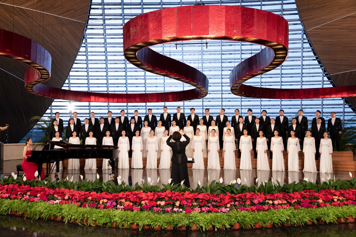 从陪伴了几代人成长的民歌《在那遥远的地方》《南泥湾》,到《军港之夜》《同一首歌》《时间都去哪儿了》等流行歌曲,再到疫情期间鼓舞了许多观众的《我们终将得胜利》《团结就是力量》……大剧院合唱团驻团指挥焦淼双手轻挥,19首歌曲回绕在氛围诗意的花瓣厅里,每首无不镌刻着时代的烙印。据大剧院合唱团团长黄小曼介绍:“曲目全部是中国作品,涵盖了无伴奏、女声合唱、男声合唱和混声合唱,在多样化上,我们下了很多心思。”