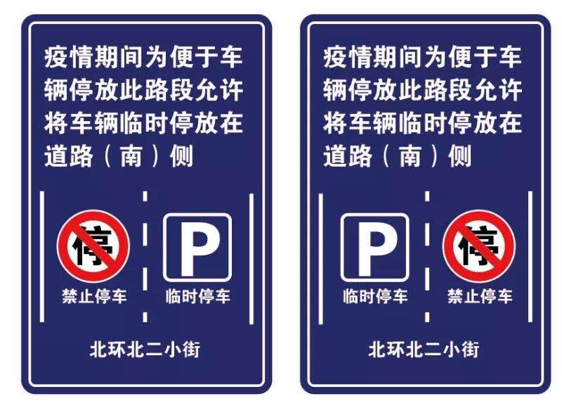1.北环北二小街:只允许靠路南侧停放,路北侧禁止停放。