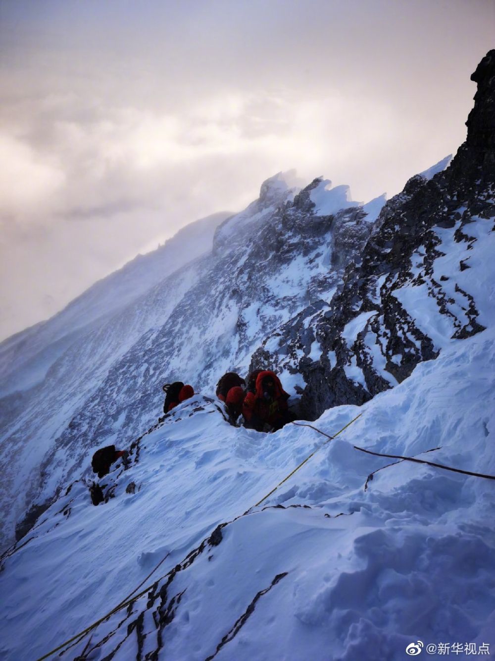 26日16点45分消息:经过12个半小时的坚强奋战,2020珠峰高程测量登山队冲锋修路组6名队员(多吉次仁、旦增罗布、顿巴、次仁罗布、扎西贡布、多吉)把安全路线绳全程铺设至珠峰峰顶。