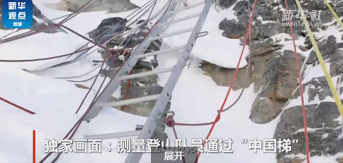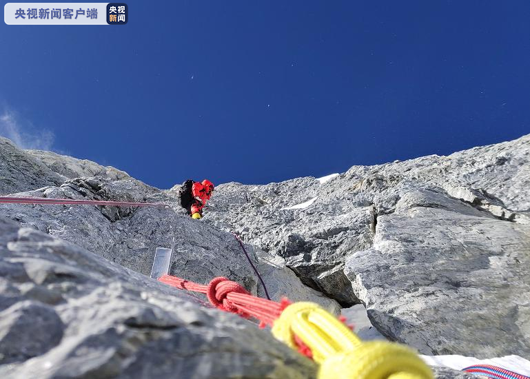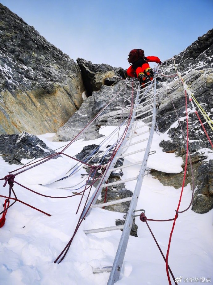 27日9时36分消息:2020珠峰高程测量登山队正在向珠峰峰顶挺进,测量登山队员通过“中国梯”。