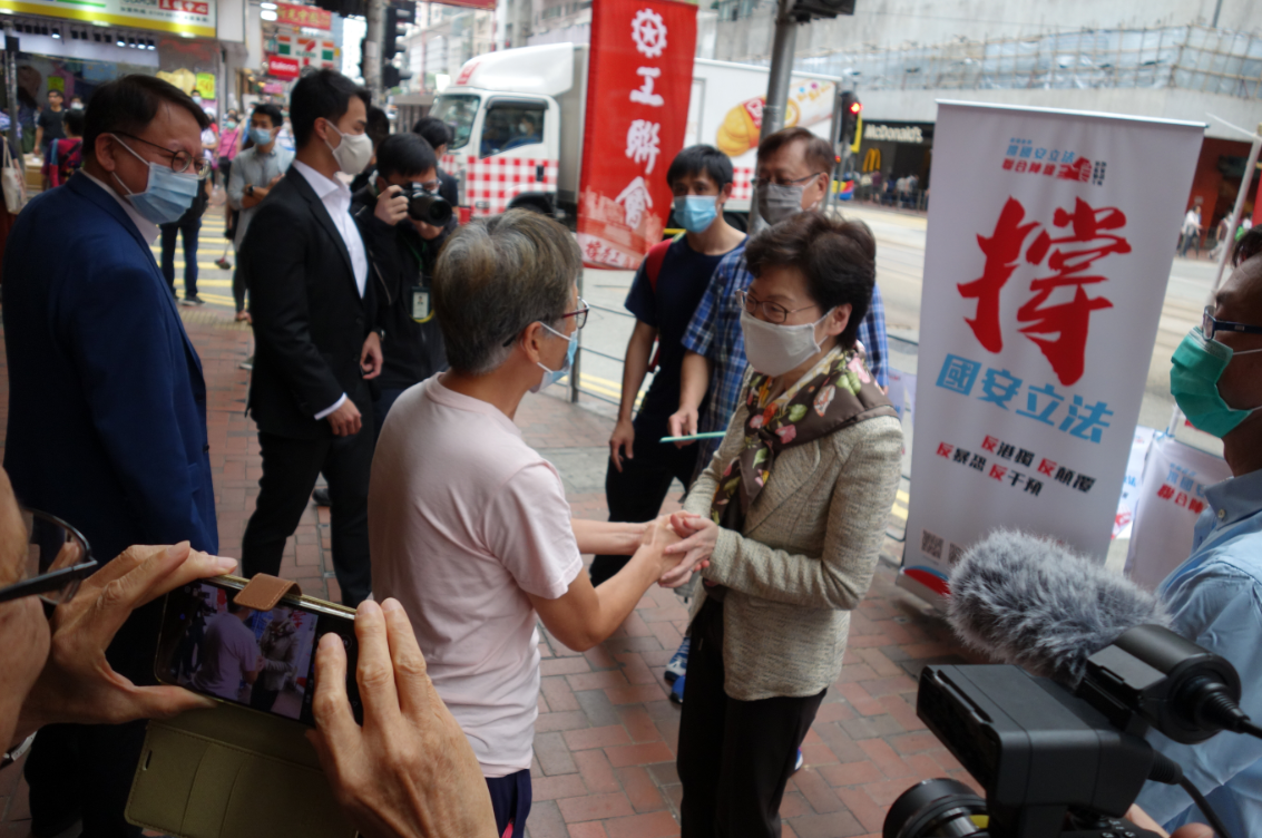 今天,支持“港版国安法”签名活动进行到第5天,众多香港市民踊跃参与。上午11时许,香港特区行政长官林郑月娥也来到北角工联会街站签名支持立法,为街坊们加油打气,现场气氛十分热烈。