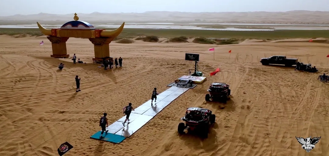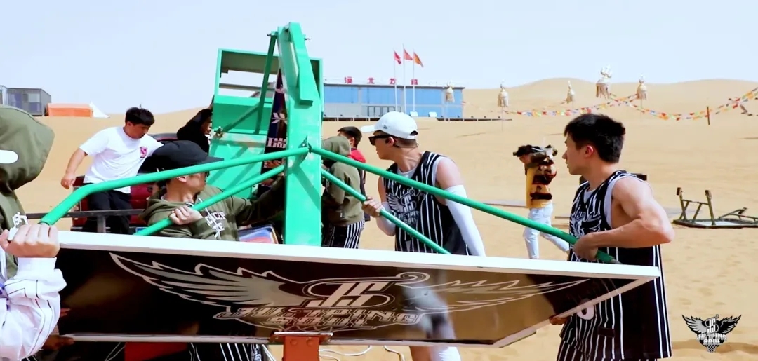 据王彬介绍,以往队伍只是活跃在各大舞台荧幕、篮球联赛场馆及商业中心,这次突破了场地限制,将训练场地搬到了火热的戈壁沙漠,在满眼黄沙中搭设篮架,上演灌篮大秀,也是队伍不断挑战自我的一次有益尝试。