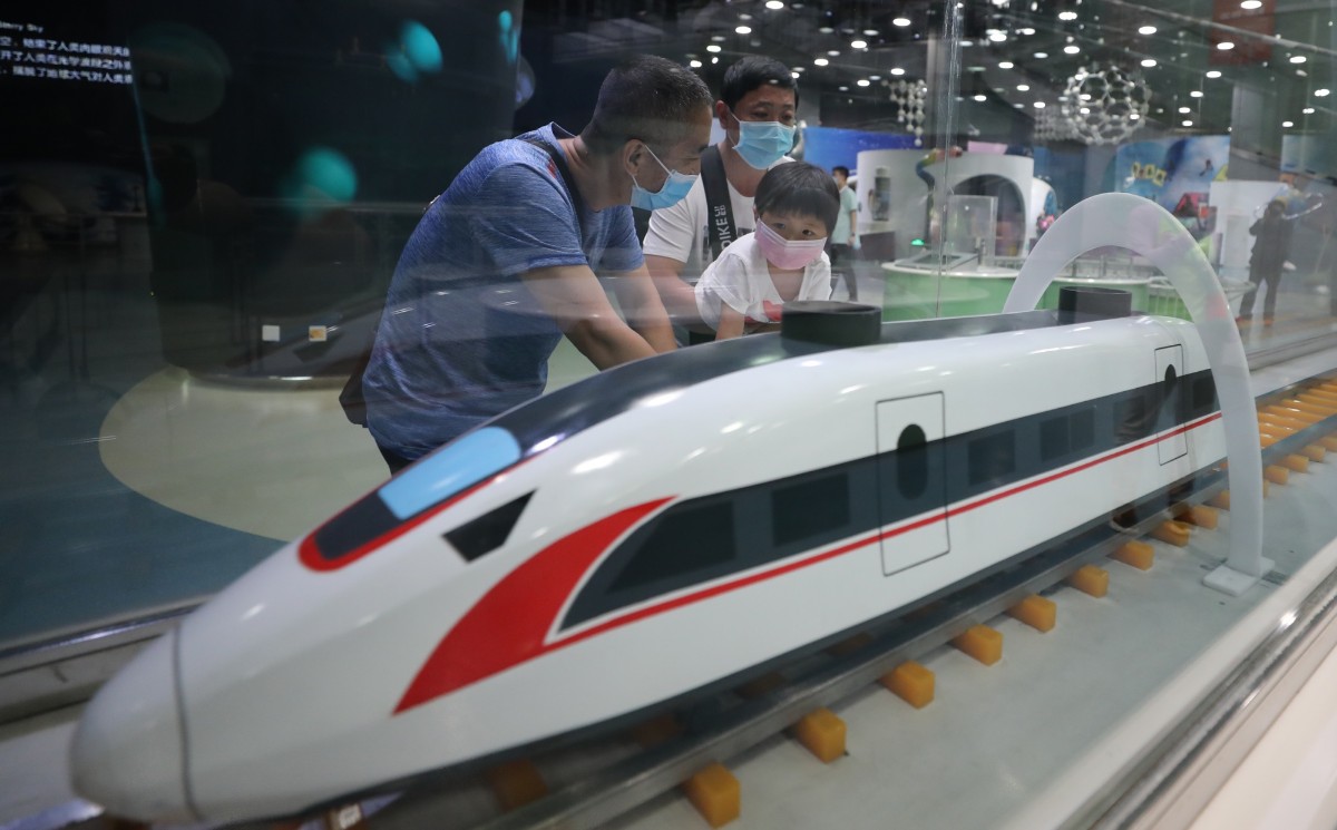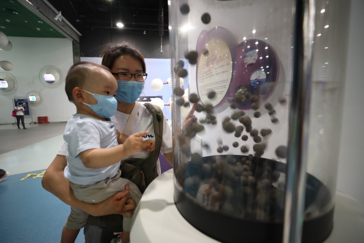 “妈妈你看,气态的分子运动是最快的!”在探索与发现A展厅,一名小朋友通过推动滑杆,模拟温度变化,观察“分子的运动”。