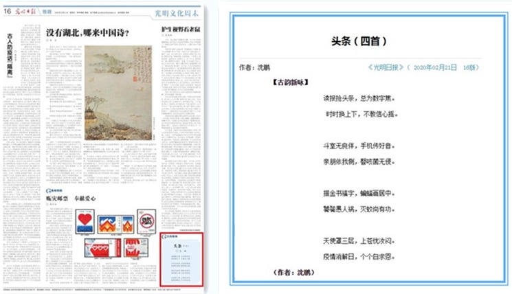 ▍沈鹏先生《头条》四首曾刊载于《光明日报》2020年2月21日16版