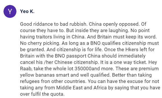 不满声最大的,是没有BNO护照却迫切想去英国定居的香港网民。他们毫不客气地写道:“居英权应该开放给香港全体700万人,而不是只针对BNO持有者。”