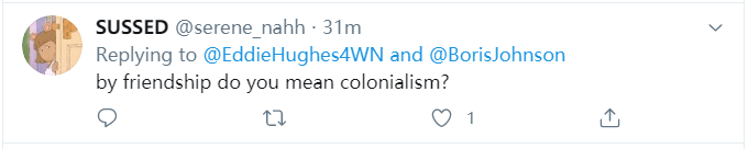 有耿直的英国网友质问:“(这个政策)是为了友谊,还是想搞殖民主义?”