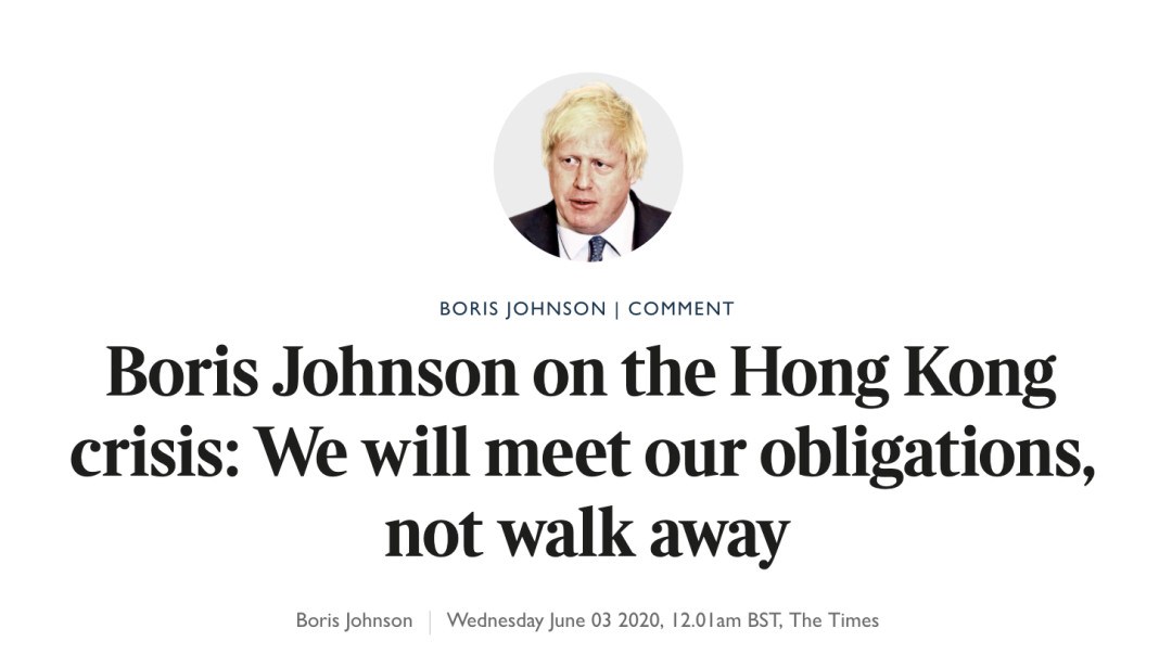 3日,约翰逊在《泰晤士报》和《南华早报》发表署名文章,对“涉港国安法”的推行说三道四。“若实施这些安全法,英国将别无选择,只能维护我们与香港民众之间的深厚历史纽带和友谊。”