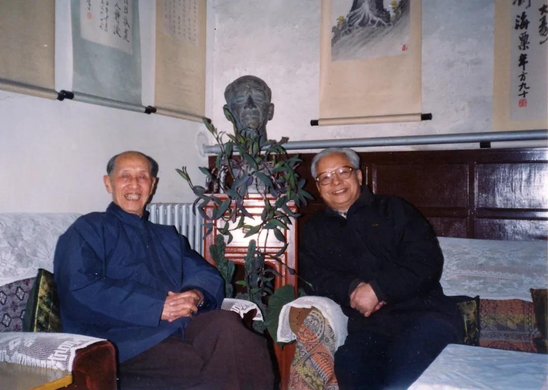 ▍晏明在臧克家(左)的寓所欢晤。(1990年)