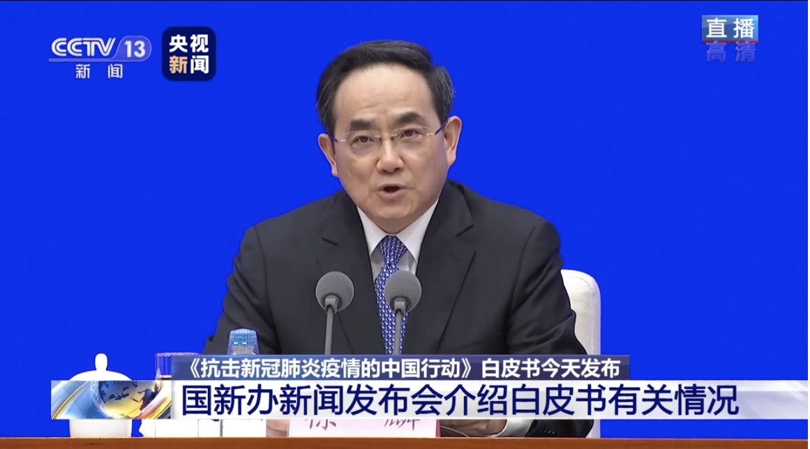 今天,国务院新闻办公室发表《抗击新冠肺炎疫情的中国行动》白皮书,并于当日上午10时举行新闻发布会,介绍白皮书有关情况并答记者问。