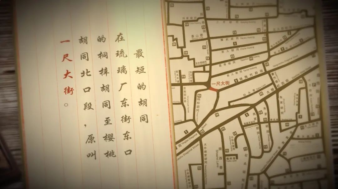 “ 最短的胡同在琉璃厂东街东口的桐梓胡同至樱桃胡同北口段,原叫一尺大街。”