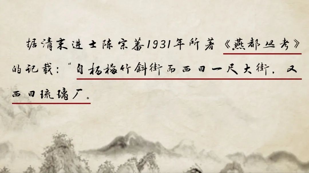 “ 自杨梅竹斜街而西曰一尺大街,又西曰琉璃厂。”