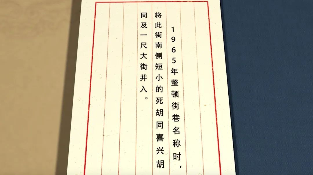 “ 1965年整顿街巷名称时,将此街南侧短小的死胡同喜兴胡同及一尺大街并入。”