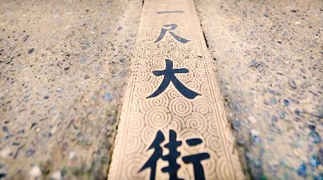 只有地面上两头各有一块长条的铜牌上面写有“一尺大街”四个黑字,这是一尺大街的地标。
