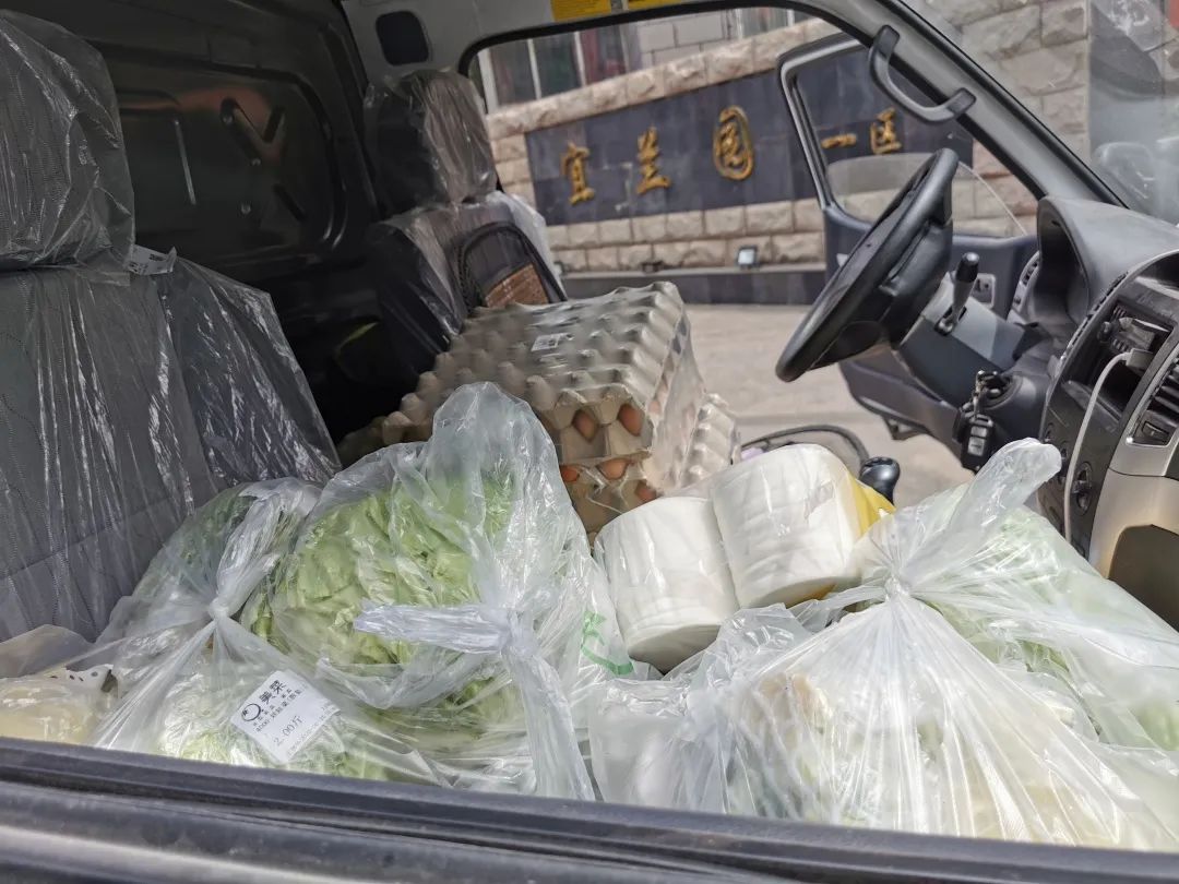 年轻人则更愿意网购。现场,记者看到一辆小巴开来停在大门前,车内装着西瓜、茄子、大葱、生姜等果蔬,还有带着包装盒的肉类。小巴车的副驾驶上,也塞满了蔬菜、卷纸等各种货品。