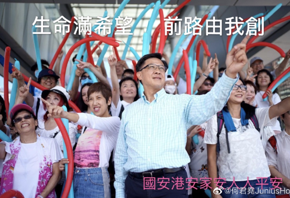 今天上午,何君尧在其个人社交媒体发布了这则《国护君安》。在发布的短片中,伴随着铿锵激昂的节奏,香港立法会议员何君尧、人气市民“黑超哥”、网红“华记正能量”和“大卫sir”分别出场,用说唱方式对某些年轻人说:“讲你又不听,听你又不明,明你又不做,做你又做错,错你又不认,认你又不改,改你又不服,不服你又不讲……”音乐短片末尾,“国安港安家安,人人平安”,几个大字扣人心弦。