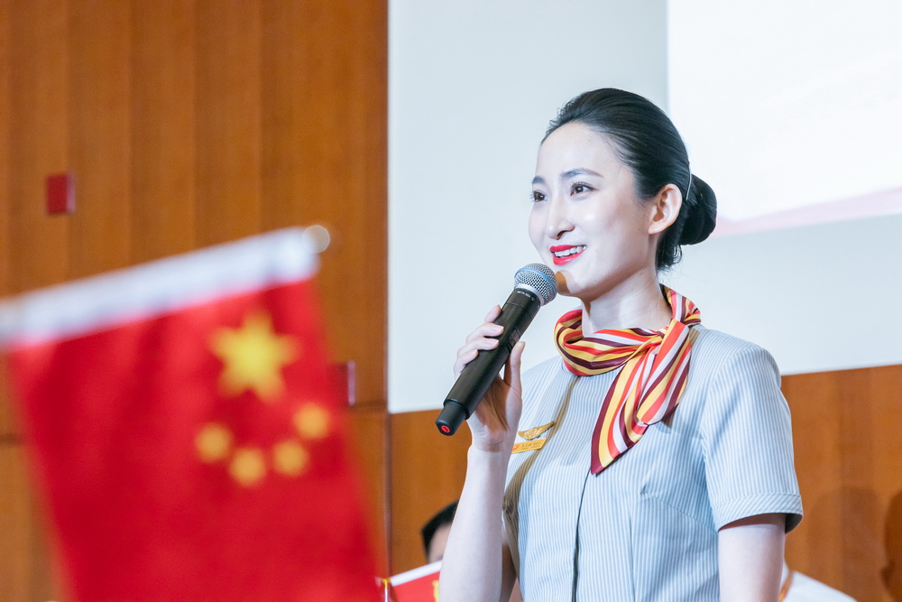 在知识竞赛中,朱文娟谈到自疫情以来,首航坚持每架执飞航班每天全面消毒2次,乘客全体测温2次。虽然因防疫要求,空乘人员要求在飞行中与乘客无接触,但凡事都有例外。