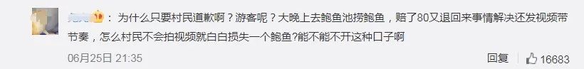 “为什么只要村民道歉?游客呢?”有网友认为,“大晚上去鲍鱼池捞鲍鱼,赔了80又退回来事情解决还发视频带节奏,怎么村民不会拍视频就白白损失一个鲍鱼?”