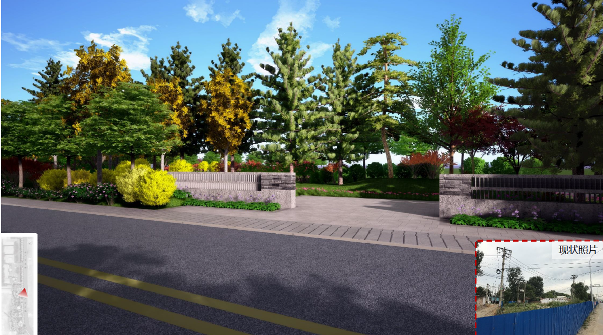 公园分两期建设,一期项目以“生态绿带小游园”为定位,以种植铁道隔离绿化带为目标,通过打造入口广场、林荫散步道、休憩场地、活动休憩广场、樱花道等,满足周边群众休闲需求,让公园可游可憩。二期在一期基础上增设休闲椅,人工水系、亭、廊、假山跌等景观小品,全面塑造一个文化彰显、绿色休闲、设施完善、充满生机的开放式公园。