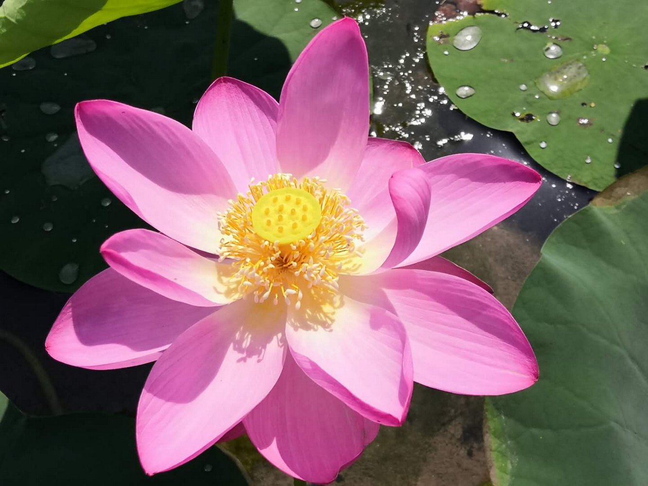 在荷花基地的一角,一处80平米左右的条池内,也有一片荷花盛放,但和其他荷花不同的是,他们都是“百岁老人”——圆明园古莲的第二代。2017年,考古人员在圆明园长春园东南隅的如园遗址镜香池内发现了11颗古莲子,经过中科院专家的监测研究和精心培育,其中的6颗古莲子成功发芽,在2019年成功复活开花。