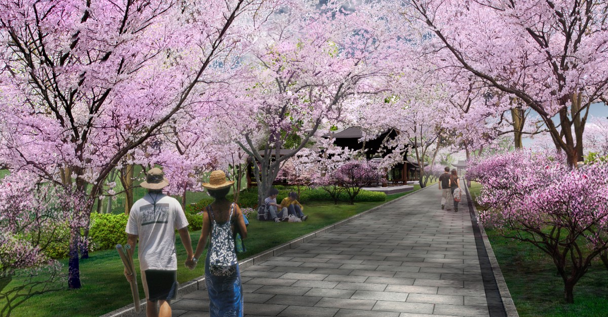 公园在建造过程中将结合该区域烧酒文化特色,围绕烧酒巷村周边的运河文化,大面积种植桃花、杏花、玉兰、海棠等春花植物,形成有春花特色的人文森林。