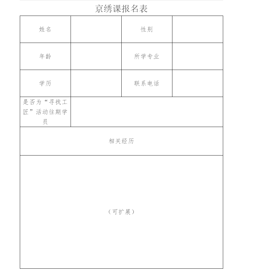 学员要求:招收学员10名,一共需完成30件作品。热爱京绣,严格出勤,一经录取,不得随意缺课