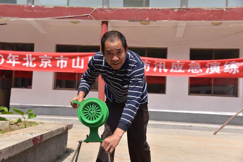“据气象台播报,午后怀柔北部山区普降大到暴雨,或引发洪水,威胁咱们村,必须立即启动各项预案,转移受威胁群众,同时,可能出现脱坡、塌陷、泥石流等危险,需要及时抢修保固……”7月23日下午,一场防汛演习按下“启动键”,怀柔琉璃庙镇孙胡沟村干部和村民组成的转移、巡查、抢险、医疗、通讯5支队伍立即进入紧急状态,遍布村中的5个监测点同时响起手摇式警报器的声音,上百名危房险户村民按照既定的安全线路撤离。