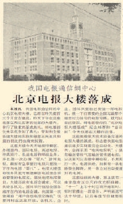 1958年9月29日,北京电报大楼宣告建成,第二天开始接待顾客。(1958年9月30日《北京日报》2版,《北京电报大楼落成》)