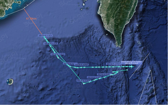 “南海战略态势感知计划”平台公布的8月8日美军P-8A反潜巡逻机在南海活动轨迹
