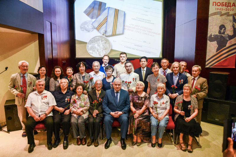 8月12日上午,俄罗斯驻华大使安德烈·杰尼索夫代表俄罗斯总统普京向18名俄罗斯伊万诺沃国际儿童院的中国学员颁授俄罗斯伟大卫国战争胜利75周年纪念奖章。