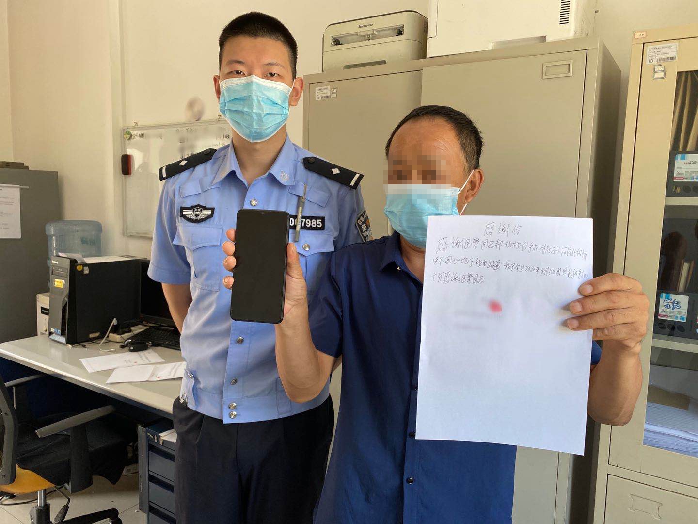 得知真相的张先生十分懊悔,8月11日上午,他来到苹果园站派出所,在领取手机的过程中,对坚持联系他的两名民警反复致歉并表示感谢。在感谢信中,张某写道:“感谢民警帮我找回手机,并在本人不信任的情况下,耐心地与我沟通。”
