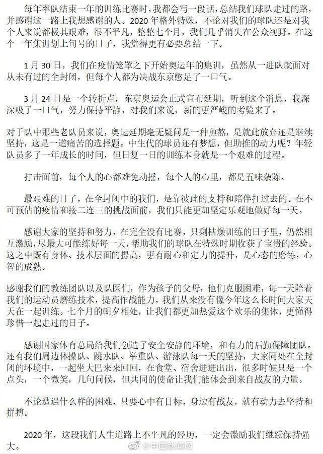 郎平发文总结说:“每年率队结束一年的训练比赛时,我都会写一段话,总结我们球队走过的路,并感谢这一路上我想感谢的人。2020年格外特殊,不论对我们的球队还是对我个人来说都极其艰难,很不平凡,整整七个月,我们几乎消失在公众视野。在这个一年集训划上句号的日子,我觉得更有必要总结一下……”