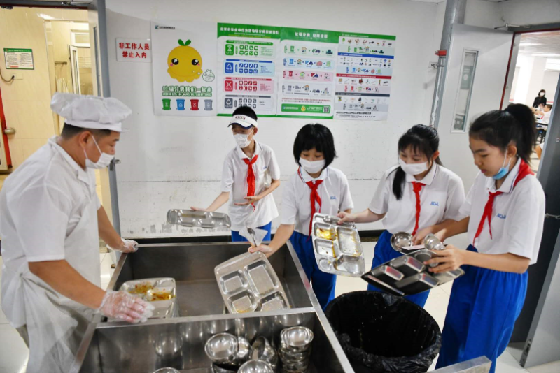 开学第一餐的菜单也挺讲究。“西红柿炒鸡蛋、炝炒圆白菜、土豆炖牛肉、宫保鸡丁……都是根据以往大数据统计出的学生最爱菜品。孩子们吃得顺口,自然剩饭就会减少。”西城外国语学校副校长黄健说,学生不浪费的前提是每一餐都喜欢吃。所以学校每天坚持两荤两素合理搭配、粗粮细做、营养均衡,一周每日菜谱尽量不重样,尽量在保证营养均衡的前提下符合学生口味,既避免了浪费也让学生学会物尽其用、珍惜利用好每一颗粮食、每一片菜叶。不仅仅是西城外国语学校,越来越多的学校计划通过大数据、学生调查等形式,不断完善配餐,学生们有望按需“点菜”。