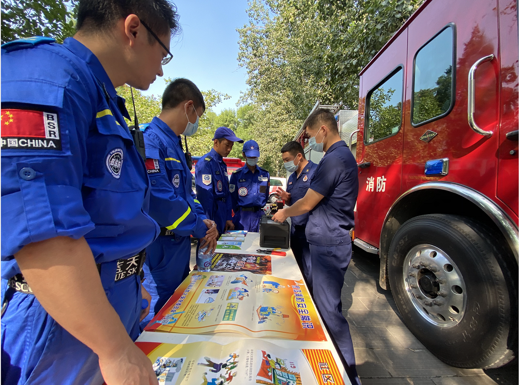 8月28日上午,由北京市应急管理局主办、北京应急志愿服务总队协办的北京市2020年“应急志愿服务在行动”系列活动开幕式在地坛公园举办,为做好属地公益项目服务、宣传消防安全知识,地坛消防救援站带来高科技救援装备,为现场8支民间志愿者团队进行展示培训。
