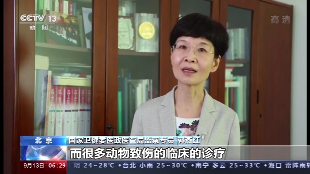 国家卫健委医政医管局监察专员 郭燕红:很多动物致伤的临床的诊疗是我们基层常见的问题,国家卫生健康委就是要加强在动物致伤临床当中的规范化诊疗水平,使得不同地区以及城乡之间在诊疗方面逐步共同提升到一个应有的同质化水平。