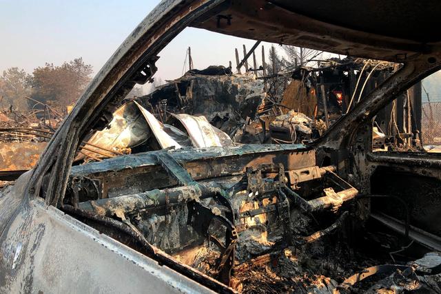 这是9月10日在美国俄勒冈州菲尼克斯拍摄的被烧毁的车辆。图自新华社