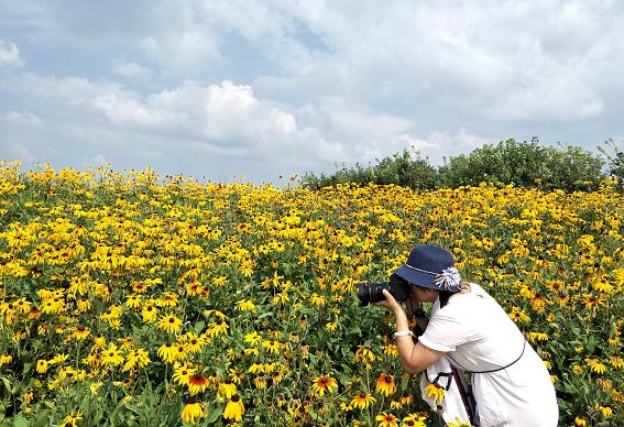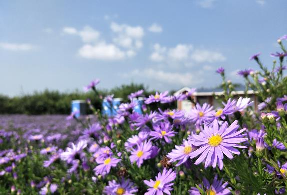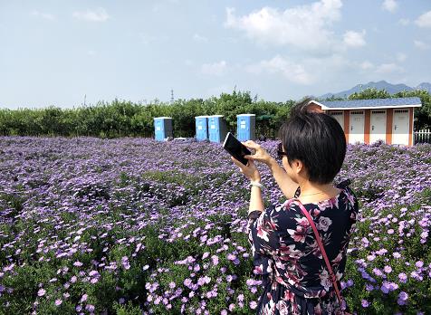 紫色的紫菀、黄色的金光菊、混色的格桑花等纷纷绽放,成片的“花海”在微风中摇曳,美的绚烂。“听说七孔桥的花海迎来了第二波盛花期,今儿天气不错,我们几个朋友相约来这儿,赏美景,拍美照,放松心情。”游客说道。