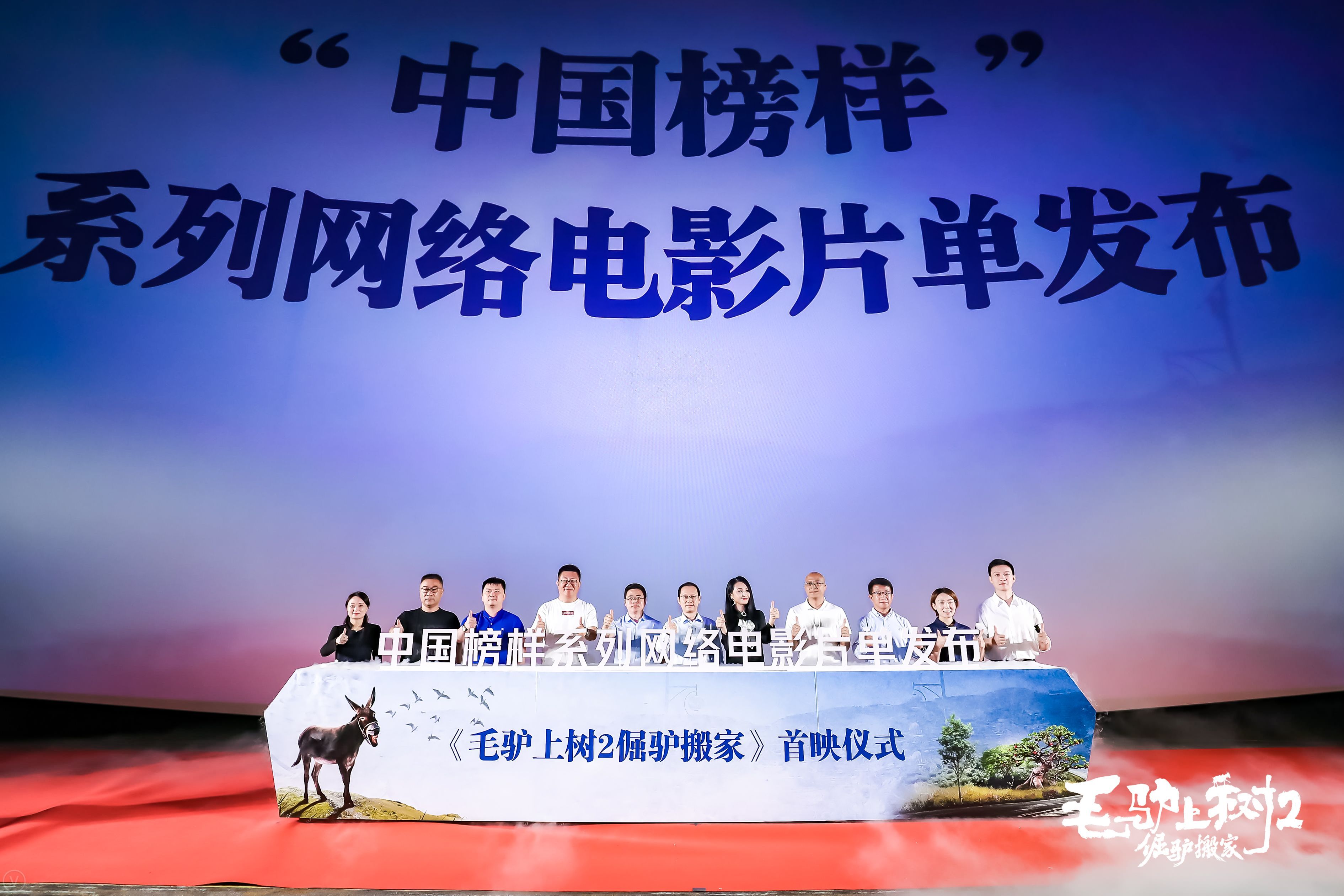 在该片的首映礼上,北京市广播电视局网络视听节目管理处副处长崔乐还发布“中国榜样”系列网络电影片单,除了《毛驴上树2倔驴搬家》,还有《中国飞侠》《扫黑英雄》《我来自北京之玛尼堆的秋天》《绿皮火车》《草原上的萨日朗》《石头村变形记》《一呼百应》《1944:冲出战俘营》《浴血无名川》等十部作品榜上有名。这些影片加大对现实题材的发掘力度,聚焦第一书记、公安干警、快递小哥等平凡英雄的奋斗事迹,以人民为中心、以现实题材为主体,成为体现各行各业模范人物精神面貌的正能量作品。
