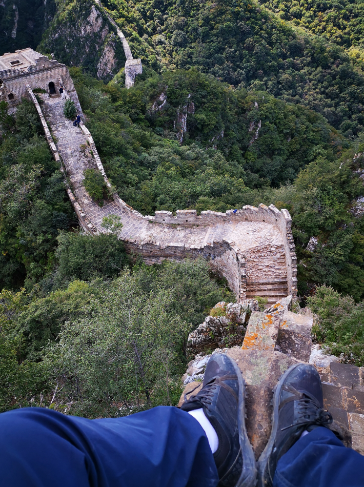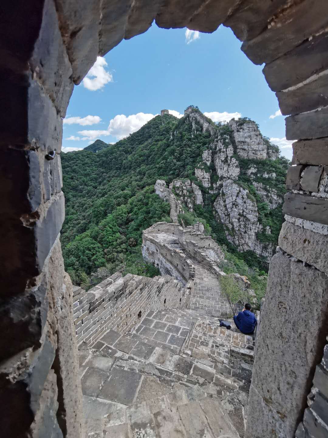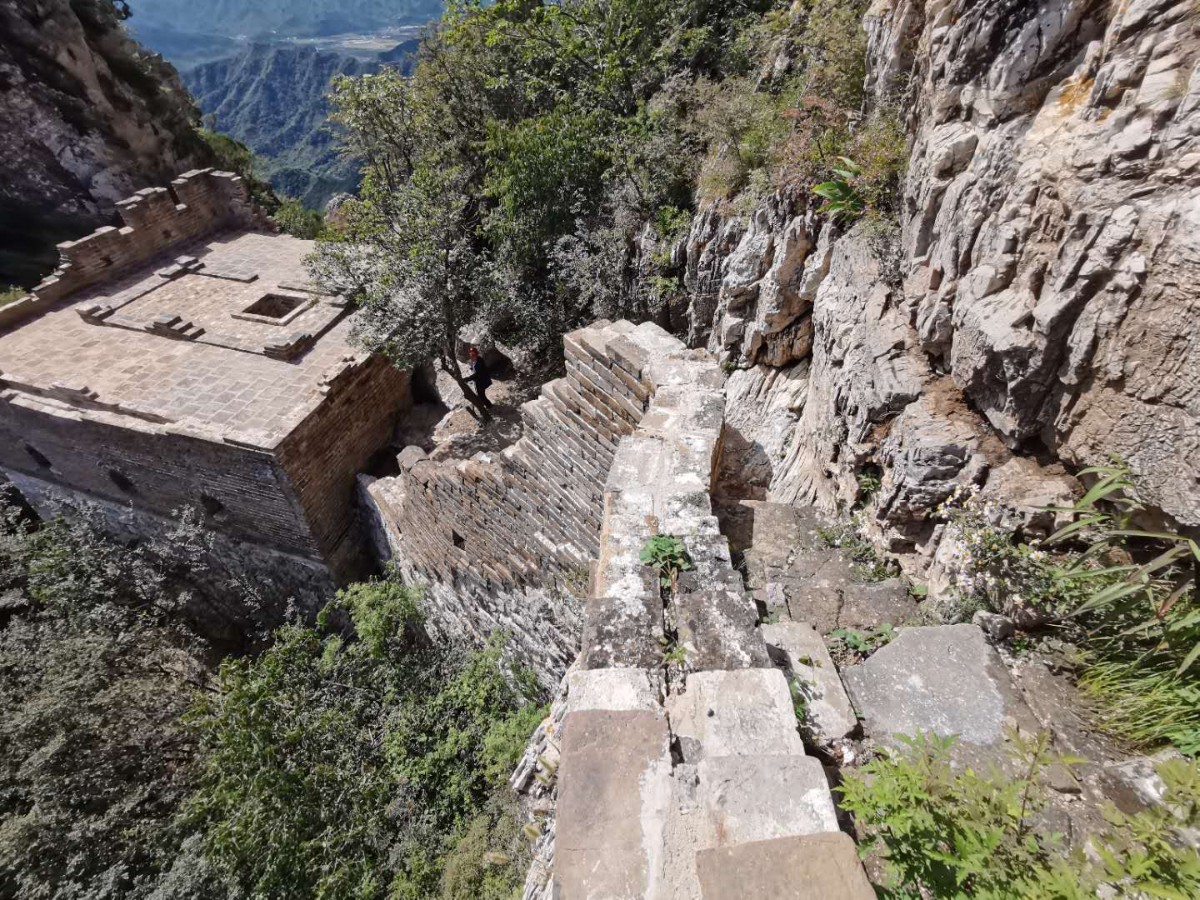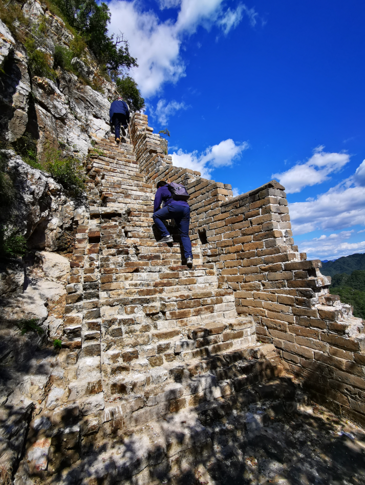 从正北楼往下走,有一个经典的小景点,叫石门。“鬼斧神工开石门,欲知长城从此行,咫尺相见一孤石,绕钻才知可通行。”形象地描述了爬石门的感受。