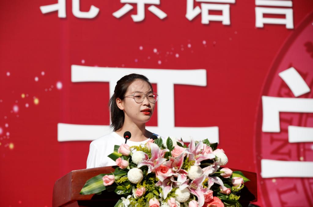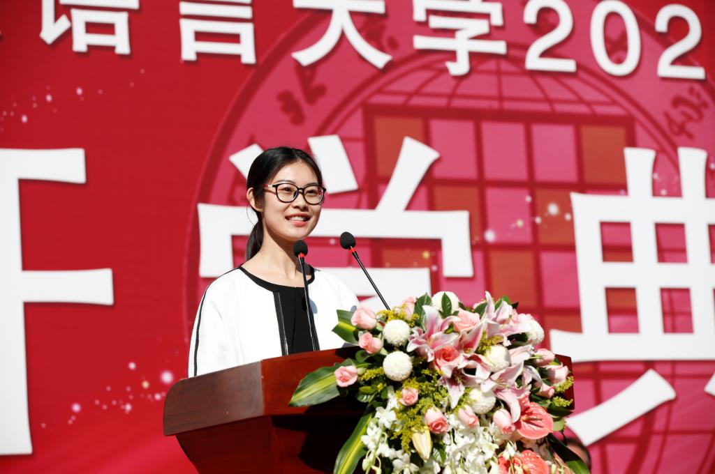 刘利校长首先向在激烈的竞争中、在疫情带来的诸多挑战下、以优异的成绩考入北语的新生表示热烈的欢迎和衷心的祝贺。