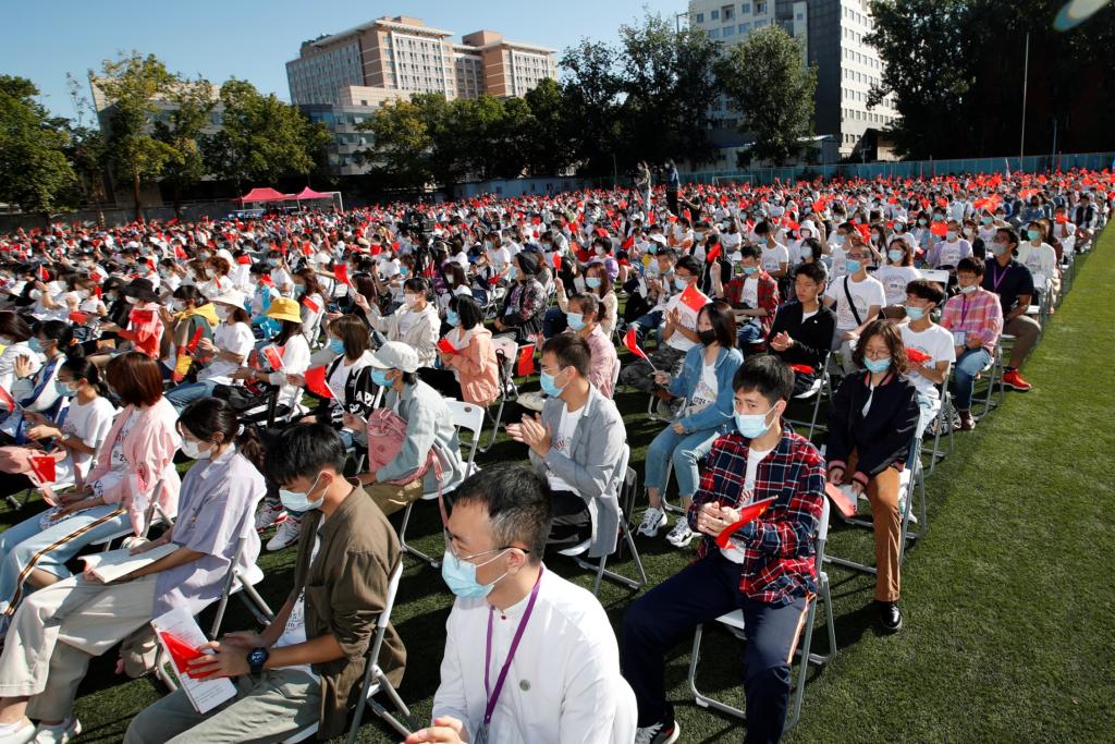 金秋九月,清风送爽。9月18日,伴随着“我们都是追梦人”的动人旋律和铿锵歌声,北京语言大学2020级新生开学典礼在学校体育场上隆重举行。来自世界各地的2781名新生身着白色T恤衫,整齐地坐在台下;同时开学典礼面向全球直播,世界各地的北语人云端相聚,共襄盛举。