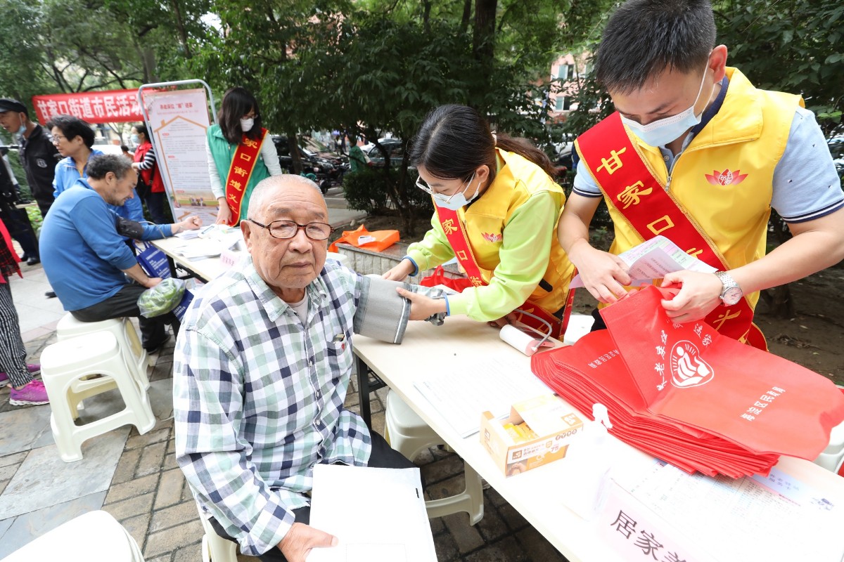 配钥匙、理发、健康咨询是甘家口街道市民活动中心的传统便民服务项目,有固定的老粉丝。理发摊位前,志愿者们仔细询问老人的需求和细节,然后熟练地剪短、打薄,理完发的老人们都显得格外精神。测血压、配钥匙的摊位前也排起了队。